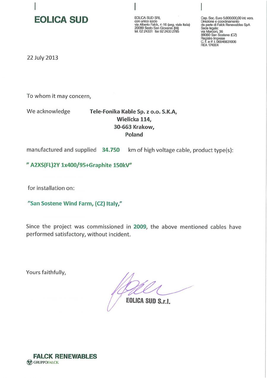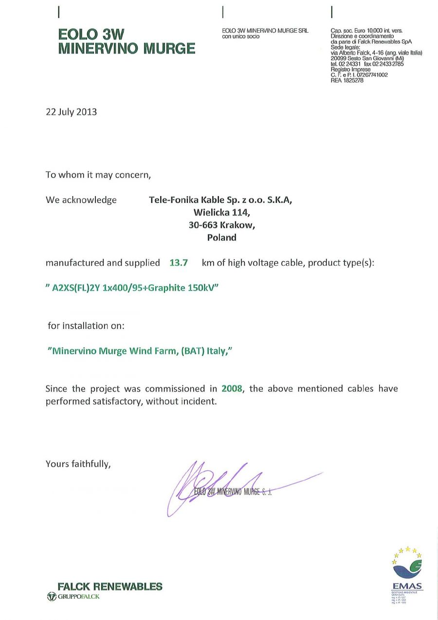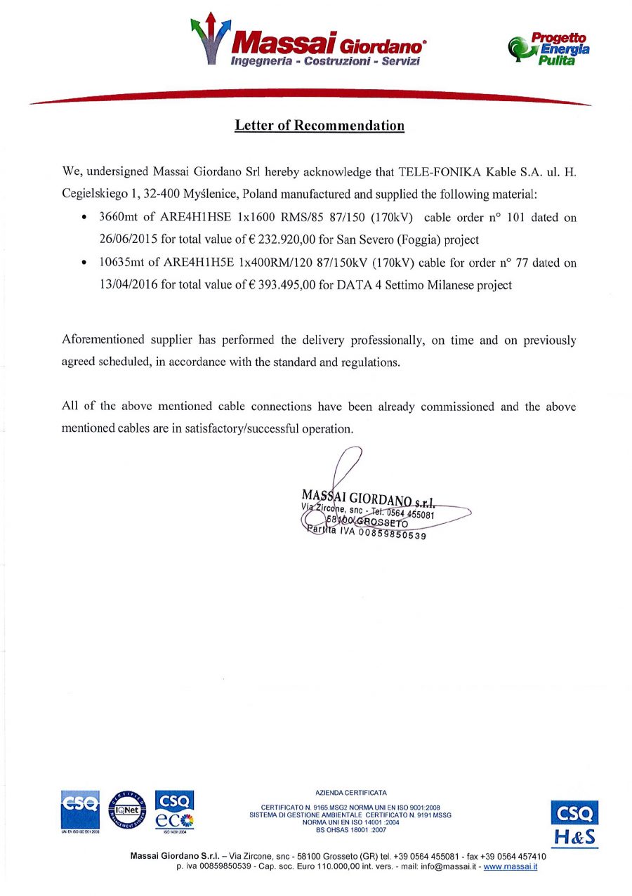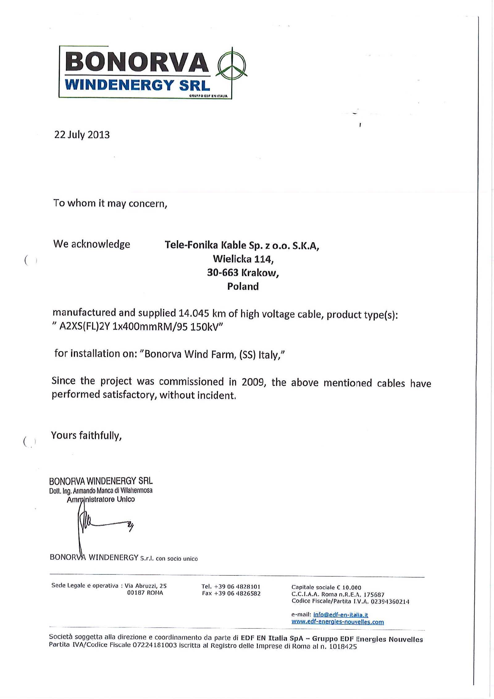 LETTERE DI REFERENZA PER IMPIANTI ESEGUITI BONORVA - EDF.pdf MASSAI GIORDANO.pdf EOLICA SUD - FALCK.pdf SIEMENS.pdf